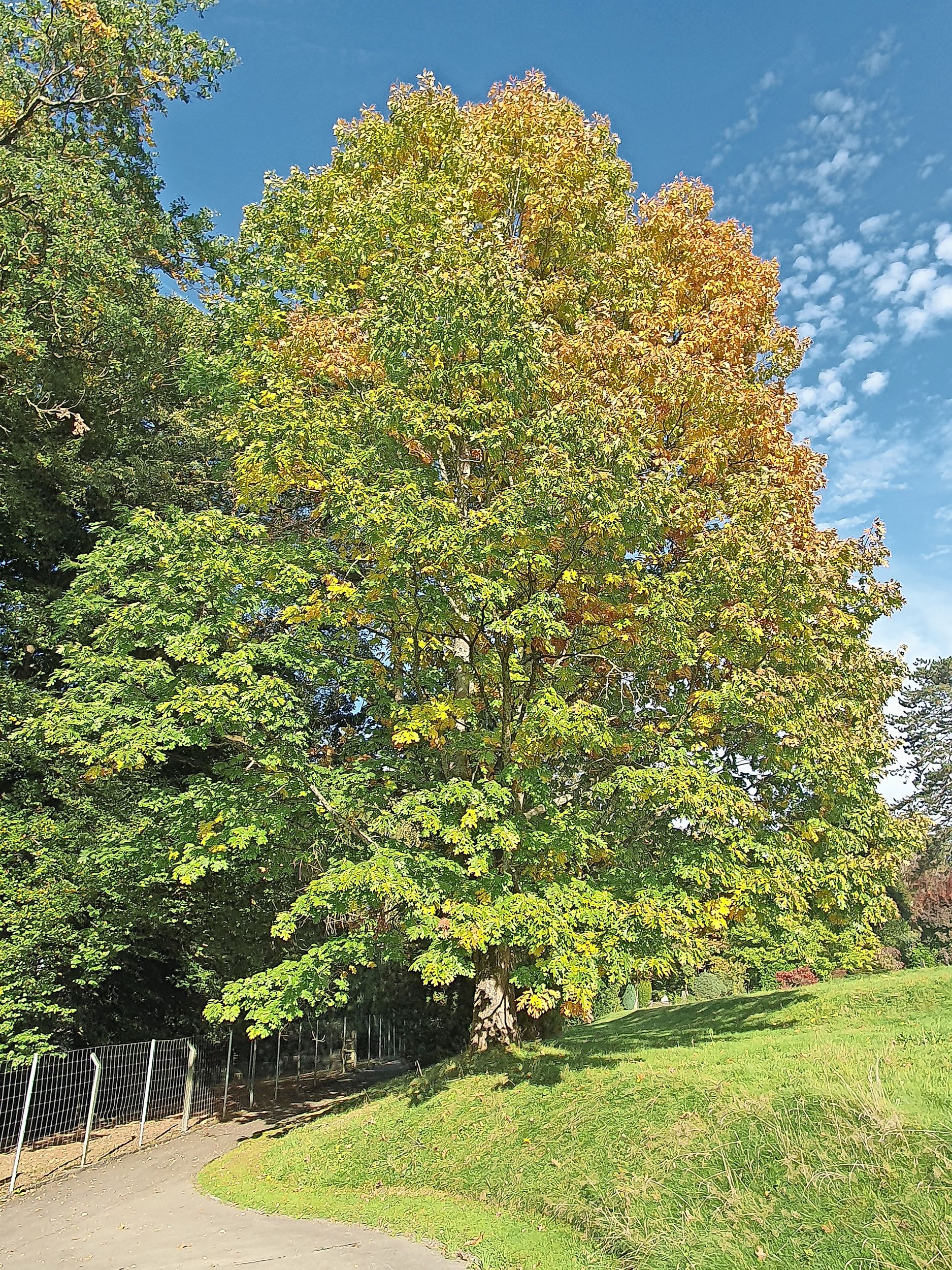 Die mächtige Eiche färbt langsam ihre Blätter.