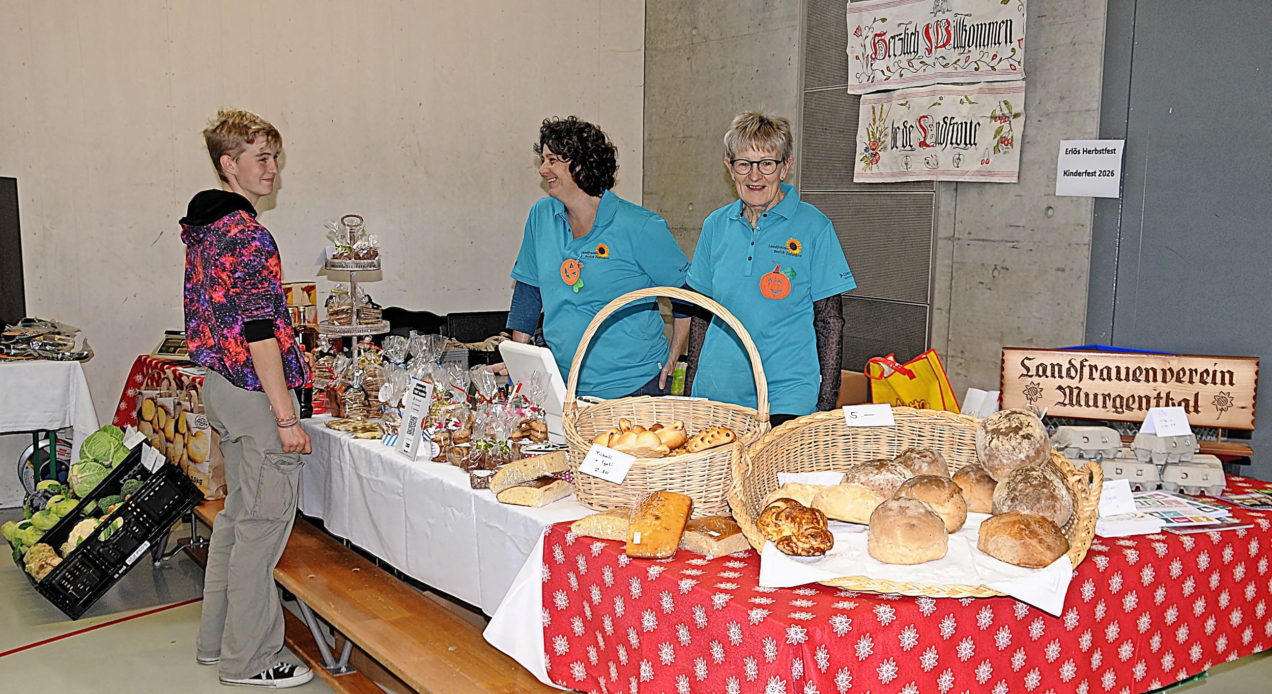 Das Wetter hätte besser sein können, als der Gemeinnützige Frauenverein und die Landfrauen Murgenthal am Samstag zum Herbstfest einluden. Der Koffermarkt für Kinder und Jugendliche, an dem Spielzeug getauscht und gekauft werden konnte, musste vom Freien in den Keller der Mehrzweckhalle verlegt werden. Dennoch tat dies der guten Stimmung keinen Abbruch.