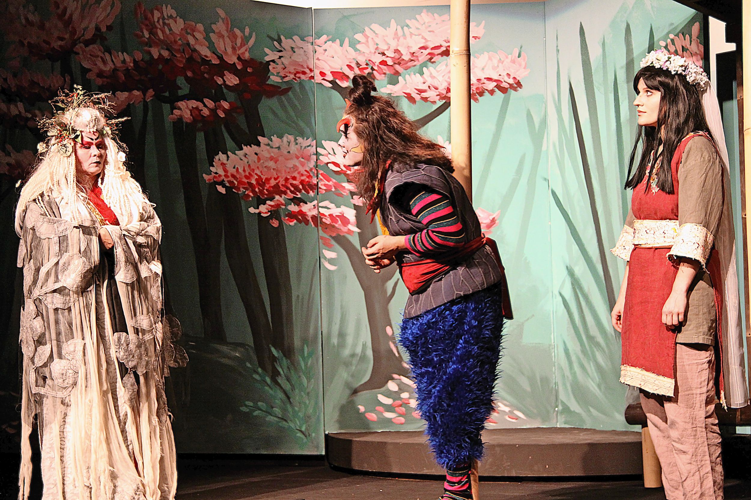 Da begegnet sie, eher unfreiwillig, dem «Faxetüüfu» Bekkanko (Jonas Stanger), einem Aussenseiter in der Welt der Teufel. Dieser verliebt sich unsterblich in das blinde Mädchen und ist bereit, sogar sein Leben zu opfern, um Yuki das Augenlicht zurückzugeben. Welche Rolle dabei die Tiere des Waldes (Roland Brauchli, Urs Hug, Barbara Leu, Elena Ossola und Monika Gassmann in Dreifachrollen) sowie die göttliche Bergmutter (Rita Stanger) spielen, sei hier nicht verraten. Aber: Magie nimmt einen grossen Platz in diesem Stück ein.