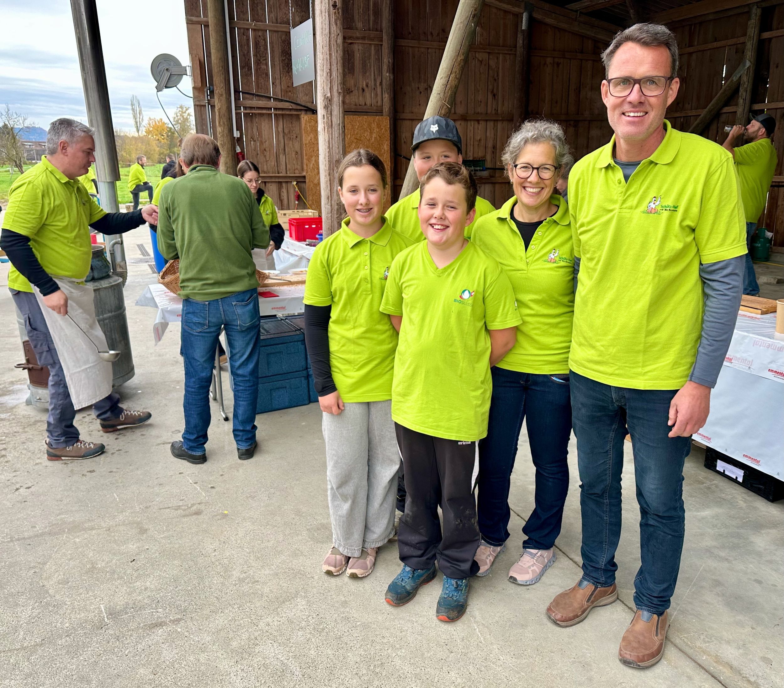 Familie Schütz im Einsatz (v.l.): Anna Lena, Luis und Max mit ihren Eltern Barbara und Markus Schütz. – Bild: Jil Lüscher