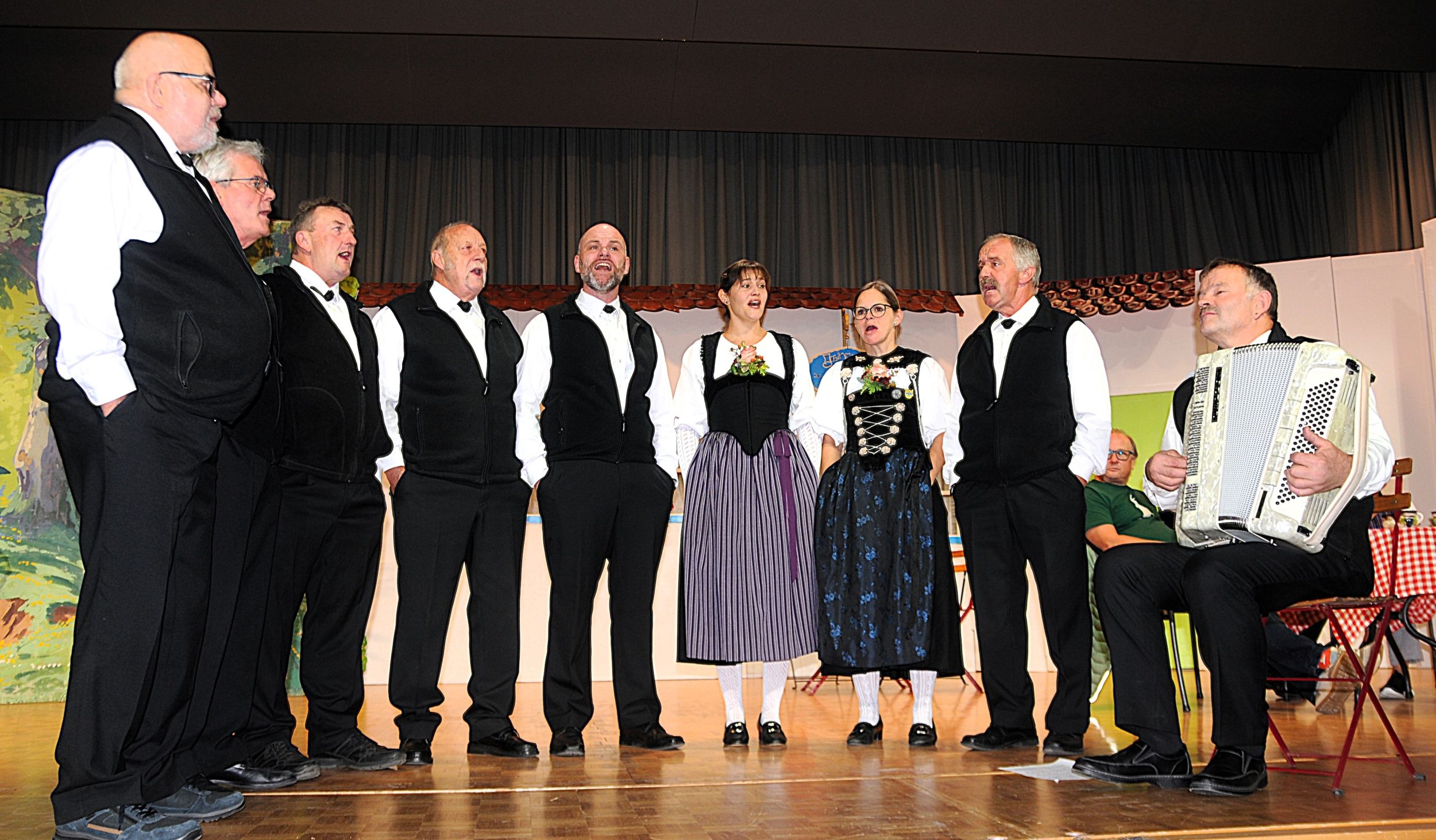 Dies ist so nachhaltig, dass Franco im zweiten Akt nach der Pause gleich selber im «Chutteli» beim Jodlerklub mitmacht und mit ihnen «I freu mi» von Paul Meier, «Fröi di Härz» von Ueli Zahnd und zum Schluss «Am Jodlertisch» von Fred Kaufmann intonierte und interpretierte. Oder anders ausgedrückt: Franco fand ein Hobby, Anschluss an die Gesellschaft, und zum Schluss wurde in der Gruppe diskutiert, wie man seine Mama günstig zu Besuch in die Schweiz holen könnte. Dazwischen brachte eine Kleinformation des Jodlerklubs das «Bodenseelied» von Ueli Moor und «Die gfitzte Manndli» von Ruedi Bieri dar. «Die Akteure», ergänzte Präsident Markus Zihlmann, «sind alles Freunde und Angehörige unserer Jodlerinnen und Jodler».